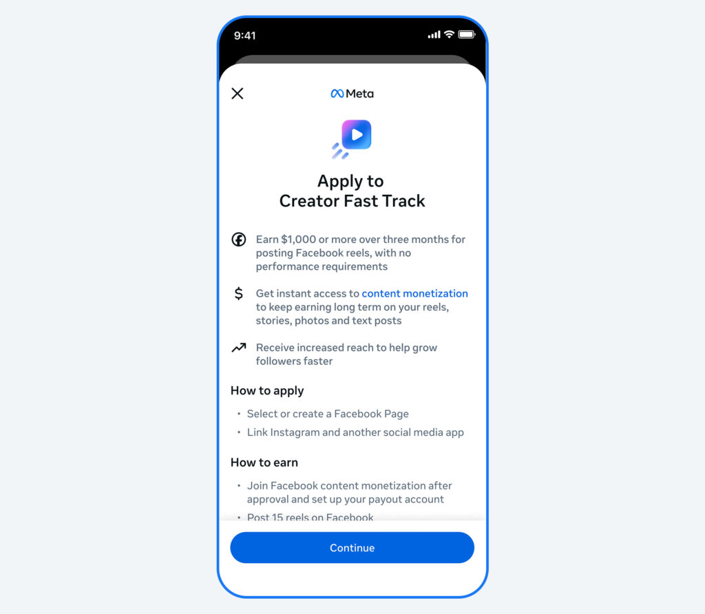 Meta launched the Creator Fast Track, a new program designed to help established creators from other platforms quickly grow their audience and earn money on Facebook.