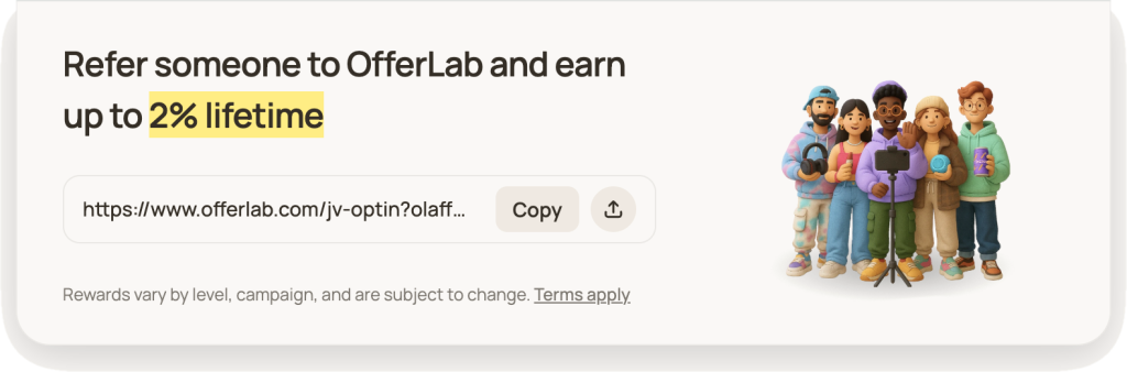 According to OfferLab, there are a few different ways to earn as an affiliate on the platform: