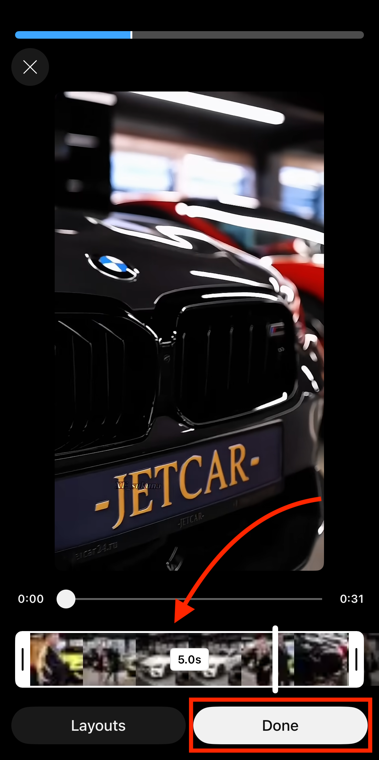 - Choose the desired 5-second clip on the trimming interface. Then click Done on the bottom right.