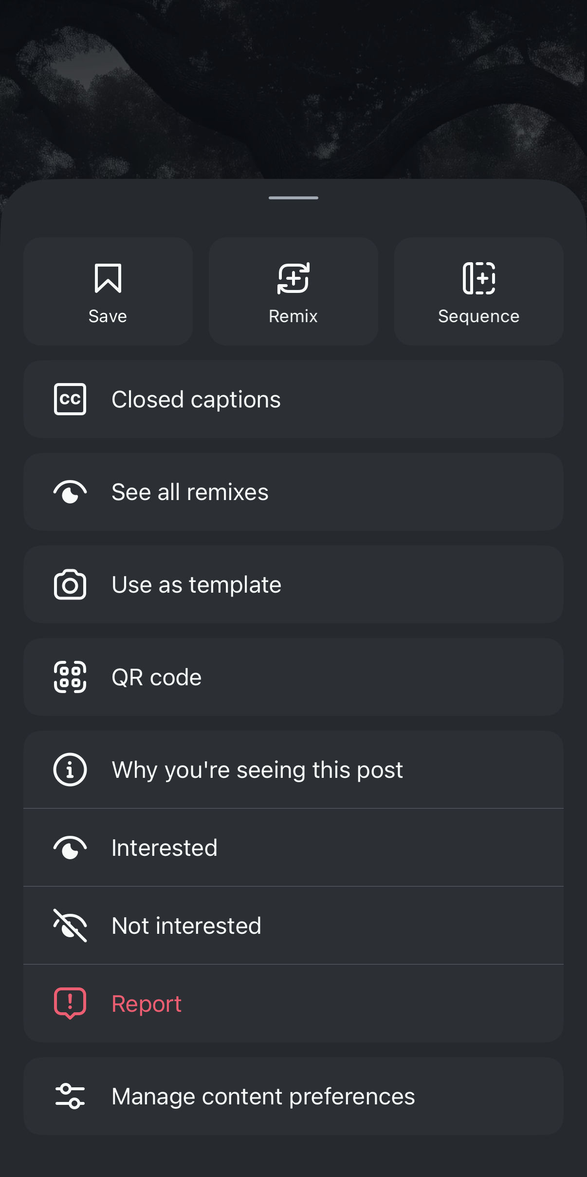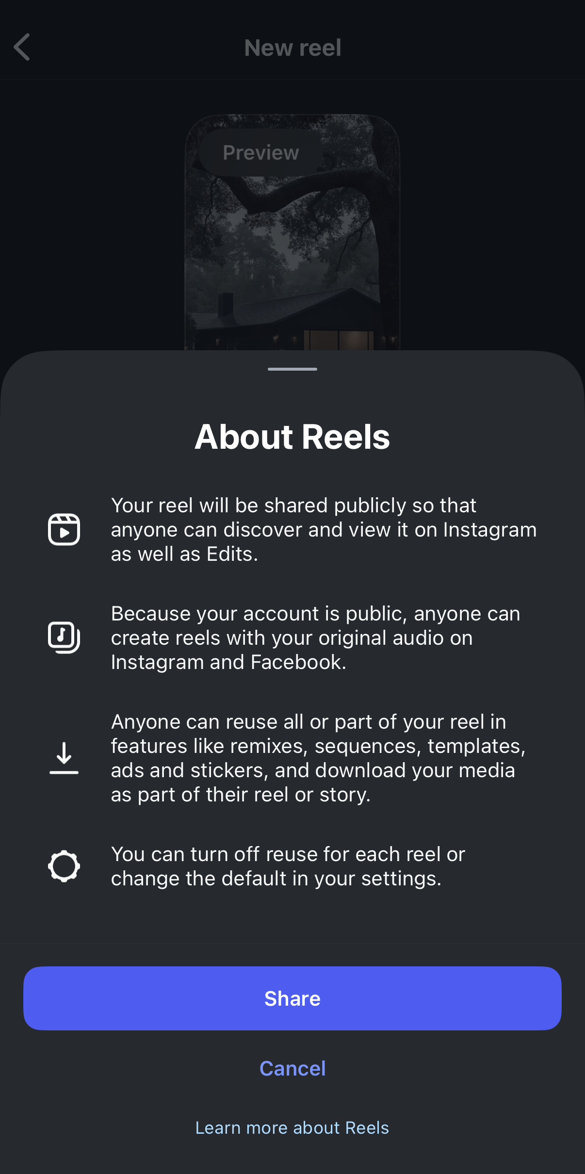 - Find the Reel you’d like to use, and click the 3 dots at the bottom right.