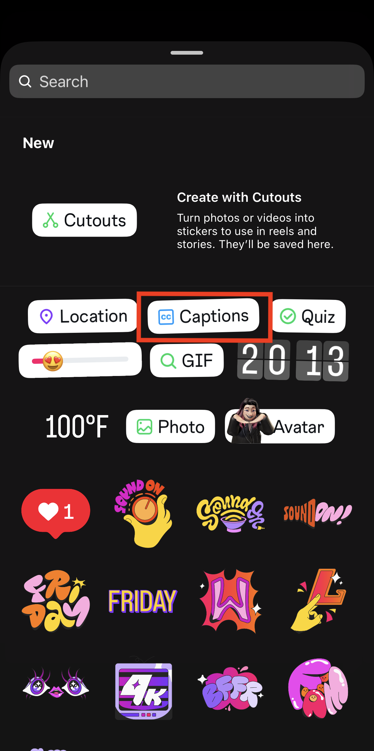 - Find and select Captions. This will automatically transcribe your video to your audience.
