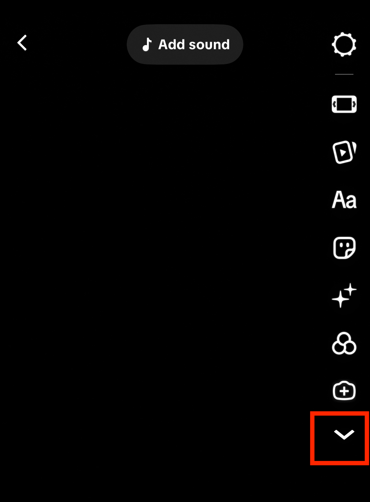 - Record or upload your video. On the editing screen, tap the downward arrow for more options.