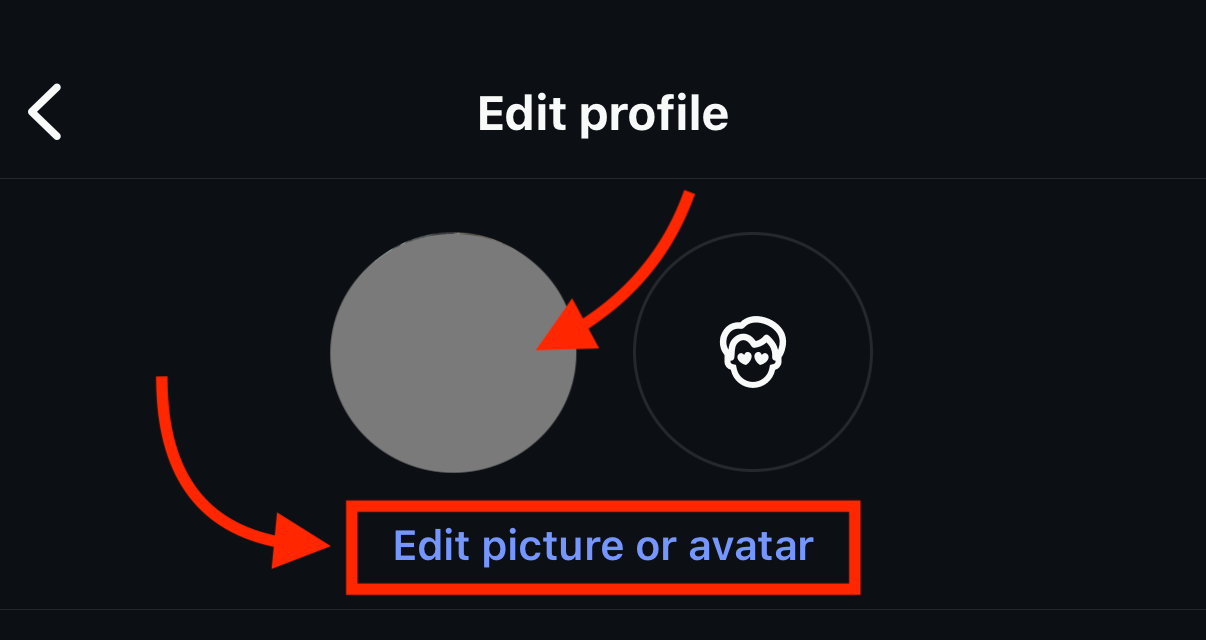 - At the top of the screen, either tap on your existing image or click Edit picture or avatar.